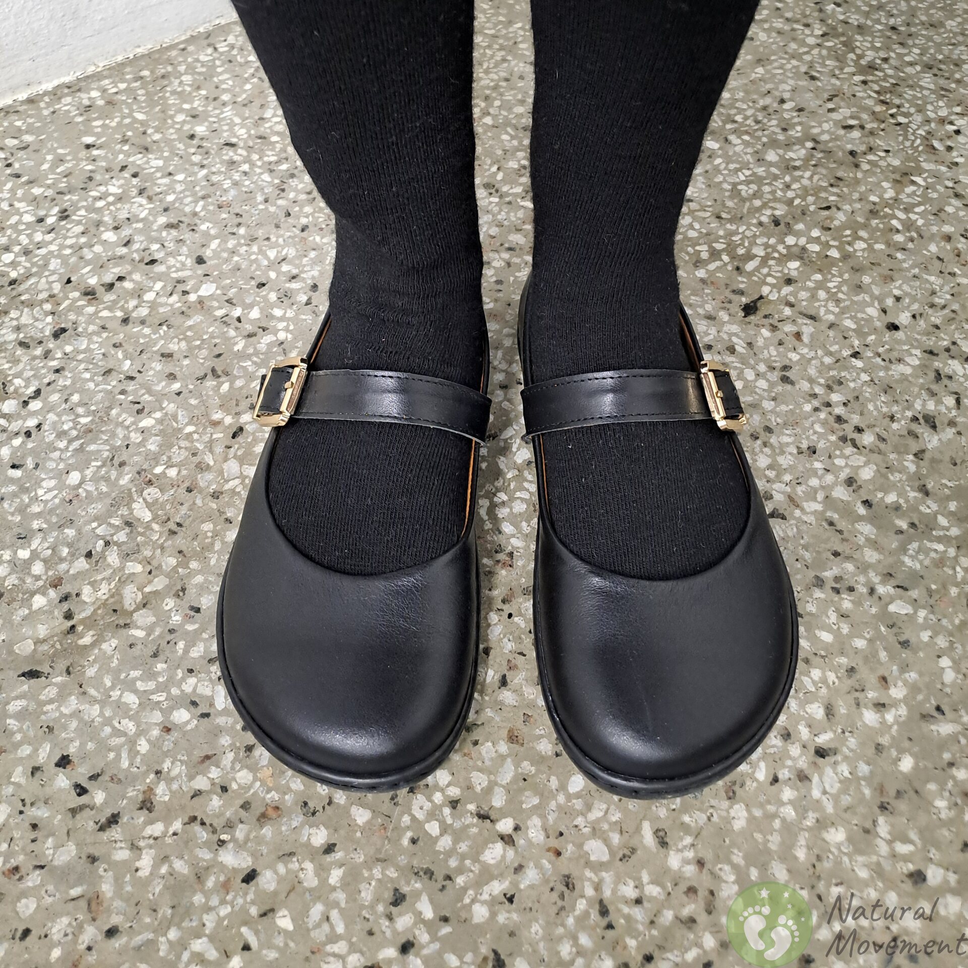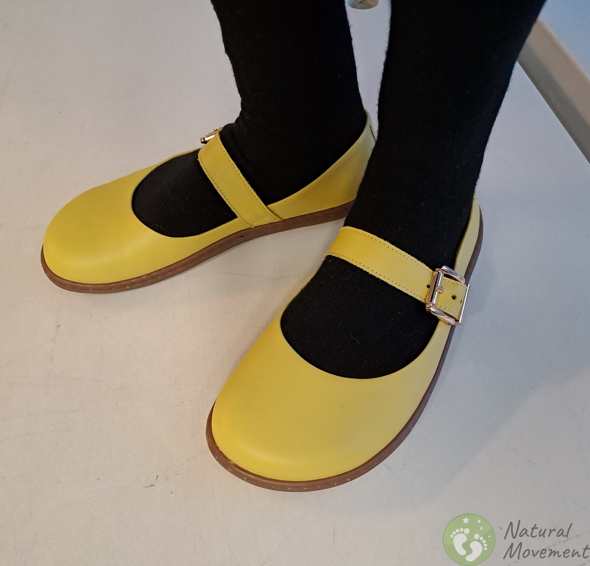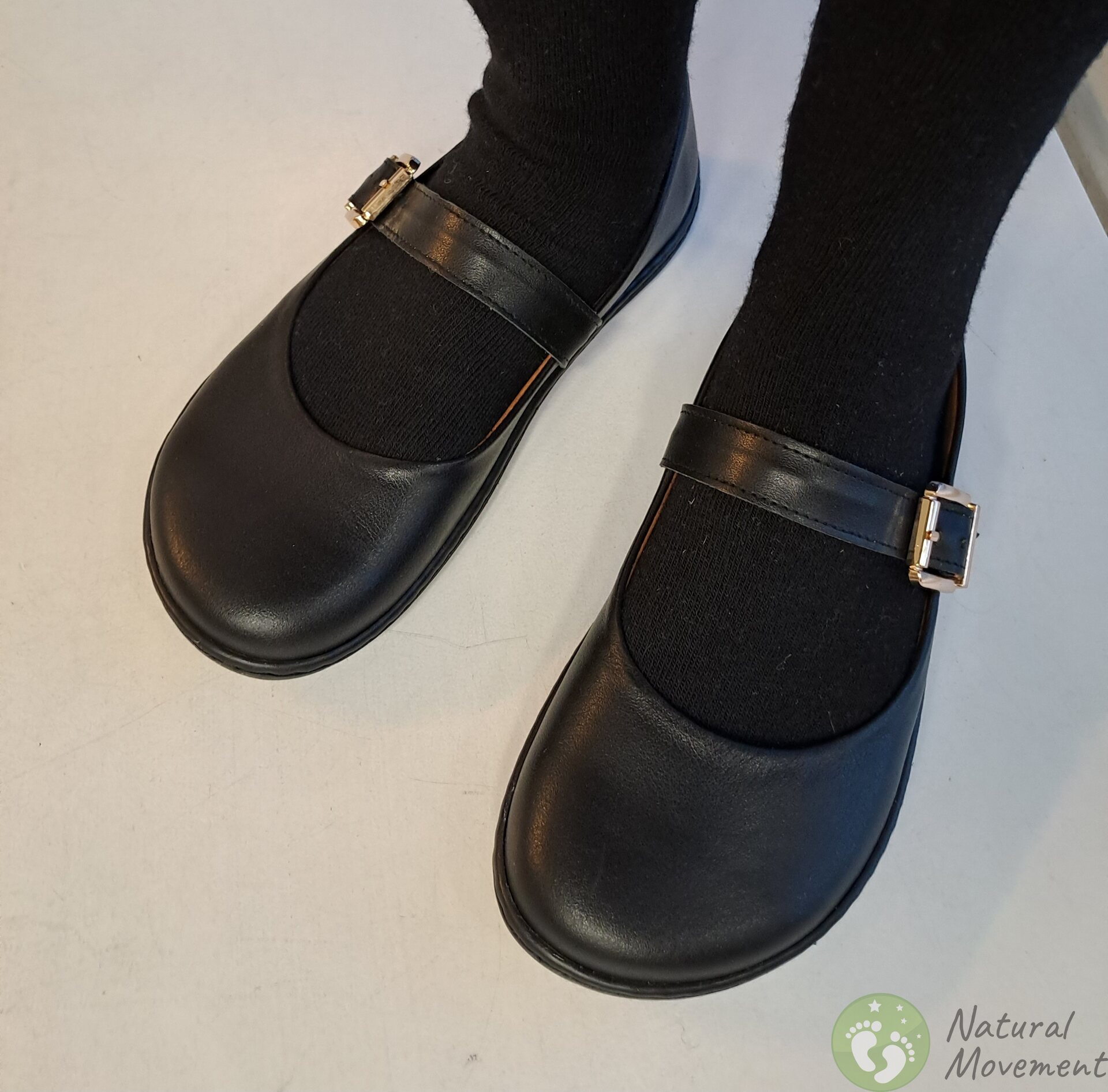 Scarpe belle e comode con la classica tomaia "Mary Jane", adatte per essere indossate con pantaloni e gonne, nella vita di tutti i giorni e nelle occasioni più festive. Tomaia e fodera in pelle, solette in pelle removibili. Suola a piedi nudi cucita saldamente alla tomaia in pelle. Possibilità di inserire solette in sughero, incluse.