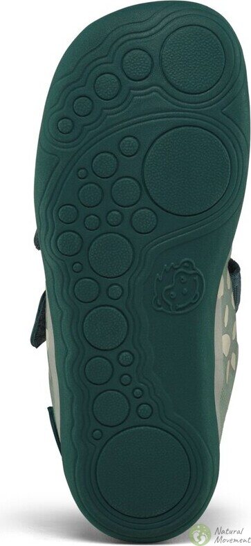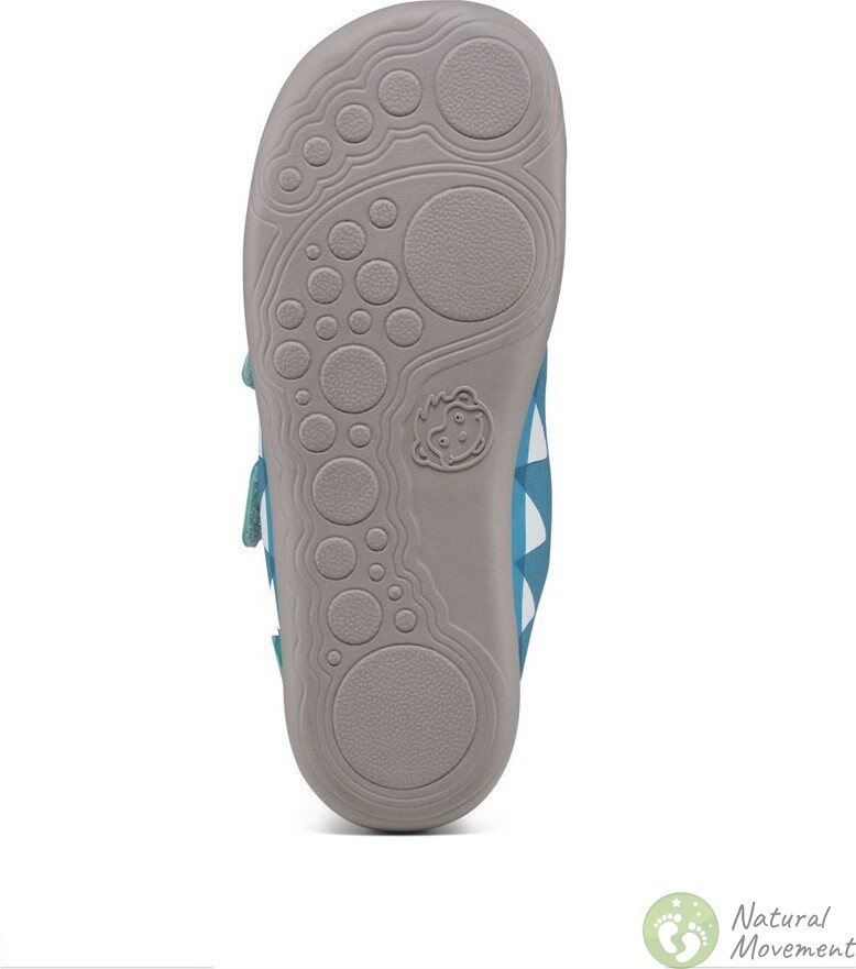 Affenzahn 鞋的灵活鞋底尽可能薄:健康的双脚无需额外衬垫。这款鞋没有后跟垫,从而保持自然的足部姿势。鞋底的花纹设计旨在在湿滑路面上提供足够的抓地力。